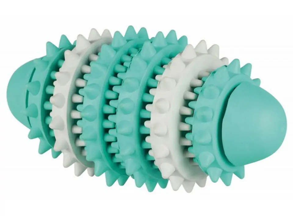 Zabawka gumowa dla psa - gryzak w kształcie piłki do rugby Trixie z linii DENTAfun.Gryzak służy jako zabawka: do rzucania lub gryzienia. Ponadto czyści zęby i pomaga w utrzymaniu higieny jamy ustnej psa.Cechy zabawki: