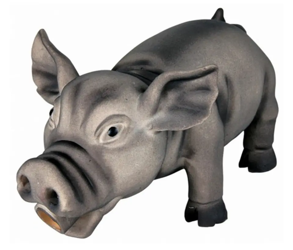 Zabawka świnia z lateksu - materiał, który jest bezpieczny dla psa w razie połknięcia (nie twardnieje i jest wydalany w całości).Solidna i wysokiej jakości zabawka z piszczałką naśladującą chrumkanie.Długość: 17 cm. Kolor losowy.