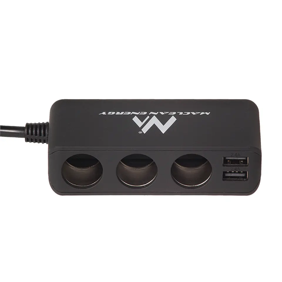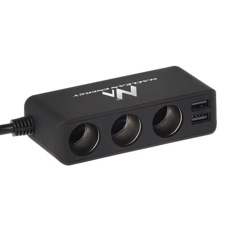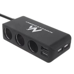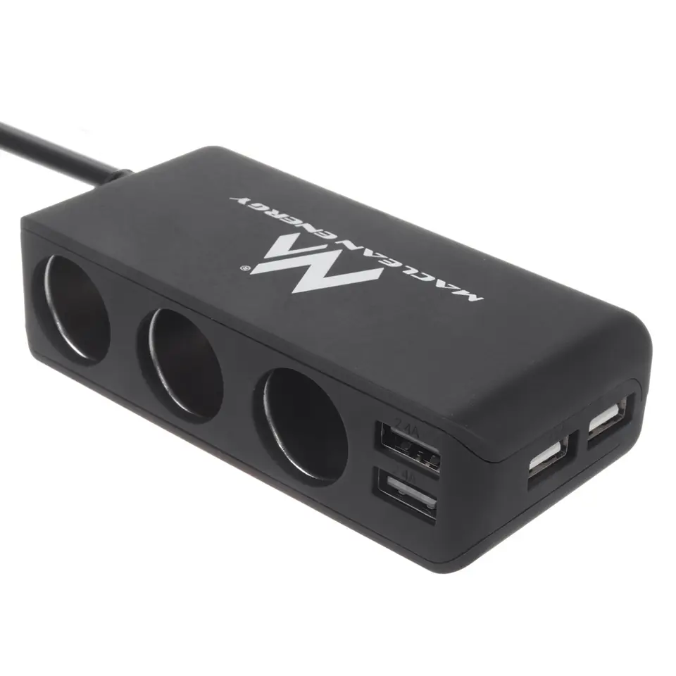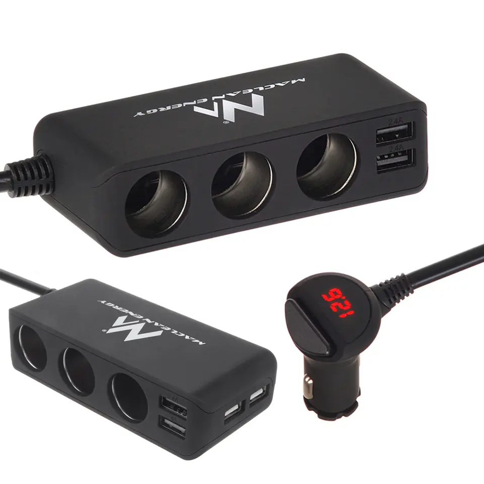 Cechy produktu:- Fabrycznie nowy, wysokiej jakości rozdzielacz gniazda zapalniczki samochodowej z 1 na 3 + cztery gniazda USB 5V + voltomierz.- Zintegrowany woltomierz we wtyczce rozdzielacza umożliwia kontrolę napięcia!- Wbudowany włącznik umożliwia bezproblemowe włączenie lub wyłącznie podłączonych urządzeń, bez konieczności wyjmowania wtyczki z gniazda zapalniczki.- Wtyczkę Plug and Play, wystarczy podłączyć do gniazda samochodowej zapalniczki.- Adapter zwiększa możliwości naszej zapalniczki samochodowej od 1 do 3 gniazd z dwoma dodatkowymi portami USB o mocy 2400mA oraz dwoma o mocy 1000mA- Nadaje się do zasilania i ładowania urządzeń elektronicznych o dużym prądzie w tym telefonów komórkowych, GPS, PDA, iPod, MP3, odtwarzaczy przenośnych video i różnego rodzaju gadżetów i akcesoriów samochodowych itp.- Przeznaczony na duży prąd, aż 120W !!- Posiada bardzo gruby przewód o długości 100cm z solidną wtyczką do zapalniczki- Zastosowanie długiego przewodu pozwala na dowolne umieszczenie rozgałęziacza.- Wbudowany bezpiecznik, zwiększa ochronę Twoich urządzeń elektronicznych.- W rozgałęziaczu zastosowano wysokiej klasy system antyprzepięciowy IC chroniący urządzenie przed uszkodzeniami w trakcie ładowania.- Dodatkowe nakładki z taśmą przylepną pozwala na montaż rozdzielacza praktycznie w każdym miejscu w samochodzie.