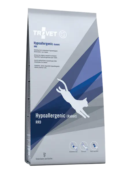 Dieta Trovet RRD zawiera wyselekcjonowane białka, które powodują eliminację składników pokarmowych mogących być przyczyną alergii lub nietolerancji pokarmowej. Dieta Trovet RRD jest pokarmem pełnoporcjowym przygotowanym z produktów najwyższej jakości, o których wiadomo, że nie powodują alergii pokarmowej. Wysokiej jakości mięso z królika jest jedynym źródłem białka, natomiast węglowodany pochodzą wyłącznie z ryżu. Dieta Trovet RRD nie zawiera produktów mlecznych, glutenu, laktozy, które mogą być przyczyną nietolerancji pokarmowej.