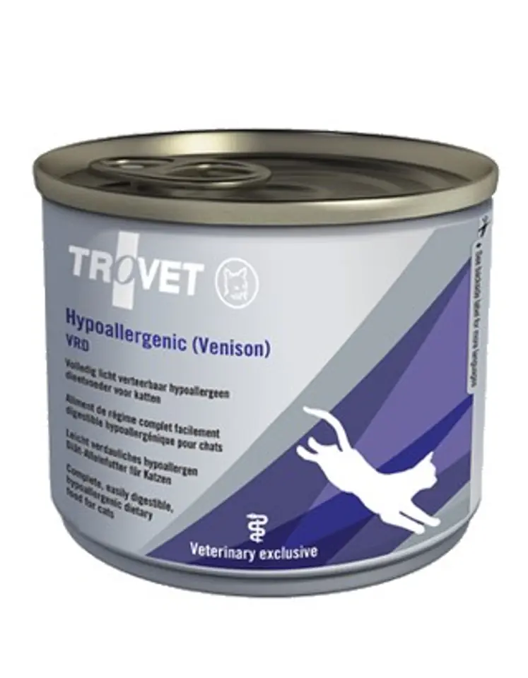 Hypoallergenic VRD (z dziczyzną)Łatwo strawna karma dla kotów z nadwrażliwością pokarmową na bazie biała z dziczyzny oraz węglowodanów pochodzących z tylko i wyłącznie ryżuDieta hipoalergiczna na bazie jednego białka (dziczyzny) i węglowodanów (pochodzących wyłącznie z ryżu).Zapobiega reakcjom immunologicznym (alergia pokarmowa), jak również reakcjom poza-immunologicznym (nietolerancje pokarmowe - wymioty, biegunka, itp.).Zmiana diety pomoże powoli zredukować swędzenie skóry, dzięki czemu zmiejsza się ryzyko wystąpienia wtónych chorób skóry.Wskazania: