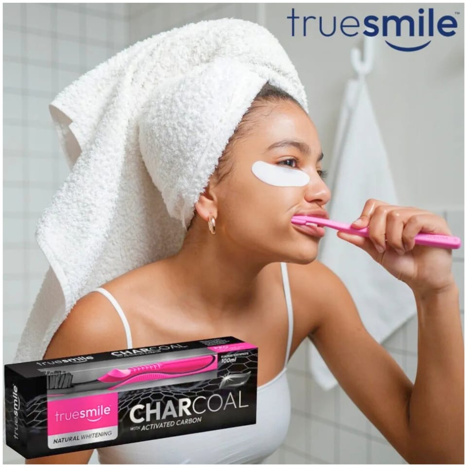 Chcesz mieć bielszy uśmiech bez wizyty u dentysty? Truesmile Charcoal to pasta wybielająca z węglem aktywnym, która skutecznie usuwa przebarwienia i przywraca naturalny blask zębów!