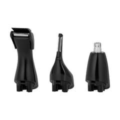 ----------GŁÓWNE CECHY----------Trymer do brody, nosa, brwiDziałanie bezprzewodoweZdejmowane końcówki dla łatwego czyszczenia----------DANE TECHNICZNE----------Regulacja nasadki grzebieniowej: 3 – 7 mmSzerokość nożyka: 16 mmPoziom głośności: =<75 dBMoc: 1,5 WZasilanie: 1 x bateria AA (brak w zestawie)W zestawie: trymer do brody, regulowana nasadka do trymera do brody, trymer do nosa, trymer do brwi, 2x nasadka do trymera do brwi (4, 7 mm), nakładka ochronna trymera do brwi, pędzelek do czyszczeniaWaga: 91,5 gWymiary: 30 x 27 x 16 mm