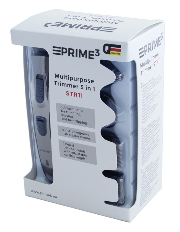 Niezbędnik każdego mężczyznyTrymer wielofunkcyjny to urządzenie, które na wyposażeniu łazienki powinien posiadać każdy mężczyzna, który chciałby ograniczyć do minimum wizyty w salonie fryzjerskim. Urządzenie to pomaga w stylizacji fryzury czy brody.Niezwykła funkcjonalnośćWychodząc naprzeciw zapotrzebowaniu Klientów marka PRIME3 zaprojektowała trymer wielofunkcyjny STR11, który dzięki pięciu wymiennym głowicom do podcinania, golenia i strzyżenia pozwoli poradzić sobie z niesfornym zarostem czy włosami.W uzyskaniu pożądanego efektu fryzury pomogą nam cztery wymienne końcówki do regulacji długości strzyżenia 3 mm, 6 mm, 9 mm oraz 12 mm.Zawsze wtedy kiedy niezbędne jest nadanie kształtu brodzie z pomocą przyjdzie końcówka trymera z możliwością regulacji długości strzyżenia (od 3 do 5 mm) stworzona do jej stylizacji.W zestawie znajduje się także trymer do uszu i nosa, brwi oraz mini golarka foliowa. Wszystko to daje nam w pełni wyposażony zestaw do pielęgnacji.Wysoki komfort obsługiWygodę użytkowania zapewniają wysokiej jakości akumulatory Ni-MH bez efektu pamięci. Urządzenie po pełnym naładowaniu można używać przez 45 minut, co daje czas wystarczający do zadbania o swój estetyczny wygląd.Komfortu obsługi dopełnia lekka waga urządzenia oraz stabilna podstawka do przechowywania trymera oraz akcesoriów w jednym miejscu.Zadbaj o swój wygląd już dziś!
