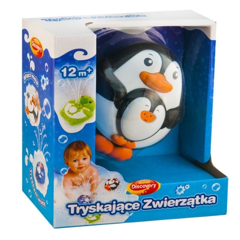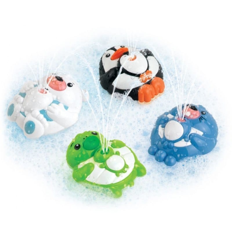 Tryskające Zwierzątka Po zetknięciu z wodą i naciśnięciu pyszczka zwierzątko zacznie tryskać wodą. Tryskające zwierzątko to prawdziwa zabawa podczas kąpieli. Wystarczy położyć zwierzątko na powierzchni wody i nacisnąć na jego pyszczek, żeby zaczęło tryskać nieprzerwanym strumieniem wody. Zabawka występuje w czterech różnych wersjach: Pingwin, Żółw, Niedźwiedź Polarny, Foka. Wymiary: Opakowanie - 18x17x10cm Wiek: 12m+