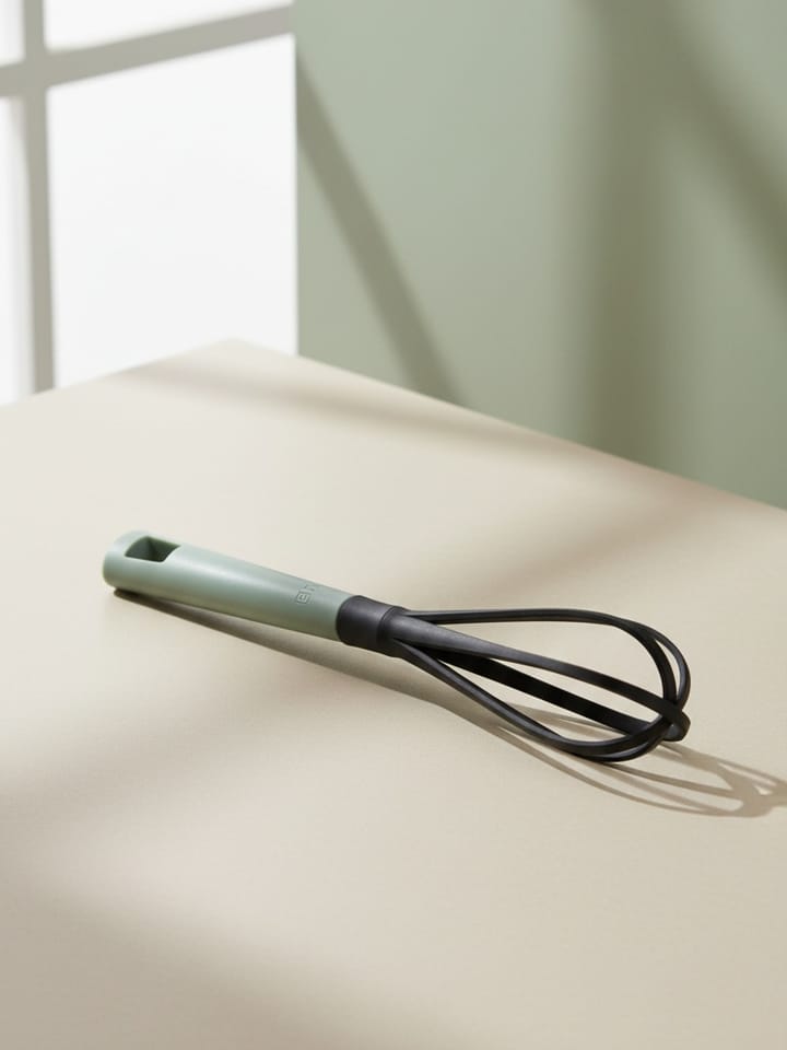 Trzepaczka 30cm - Idealne narzędzie do przygotowywania potraw Excellent HousewareTrzepaczka HV680813-PROM to niezbędny element każdej kuchni, łączący funkcjonalność z estetyką. Dzięki swojemu nowoczesnemu designowi, idealnie wkomponowuje się w różnorodne style wnętrz, od klasycznych po minimalistyczne. Wygodny uchwyt zapewnia komfort podczas użytkowania, a trwałe materiały czynią ją solidnym narzędziem do miksowania.Kluczowe cechyNowoczesny design, który pasuje do każdej kuchniErgonomiczny uchwyt gwarantujący wygodę użytkowaniaWykonana z materiałów odpornych na działanie wysokich temperaturŁatwa w czyszczeniu i przechowywaniu dzięki niewielkim rozmiaromOdpowiednia do różnych naczyń i diametralnie zmienia przyjemność gotowaniaDlaczego warto wybrać Excellent HousewareTrzepaczka HV680813-PROM wyróżnia się subtelnością kolorów oraz minimalistycznym stylem, co czyni ją doskonałym wyborem dla osób dbających o estetykę kuchni. Jej nowoczesny wygląd oraz jakość wykonania sprawiają, że staje się nie tylko narzędziem kuchennym, ale także elementem dekoracyjnym. Wykonana z wysokiej jakości materiałów, odporna na wysokie temperatury, sprosta wymaganiom nawet najbardziej wymagających kucharzy.Zastosowanie i pielęgnacjaTrzepaczka idealnie sprawdzi się w codziennym użytkowaniu . jest łatwa do czyszczenia, dzięki czemu można ją myć w zmywarce. Zaleca się nie stosować jej w dużych garnkach, aby nie narazić uchwytu na uszkodzenie. Przechowywać w szafce lub wieszaku na przybory kuchenne, aby zachować jej właściwości na dłużej.Dane techniczneWymiary: długość 65 cm, wysokość 3,93 cmMateriał: tworzywo sztuczneKolor: stonowany zielony uchwyt, czarne końcówkiKompatybilność: do użytku z różnymi naczyniami kuchennymiPojemność: odpowiednia do użytku w domowej kuchni