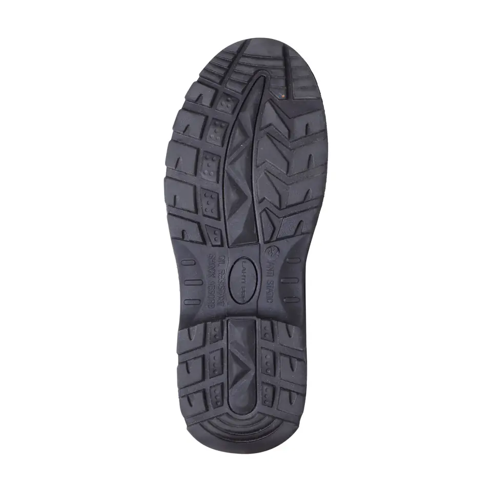 - MATERIAŁ: Wierzch: skóra. Podszewka: dzianina siatkowa. Wyściółka: wymienna. Podeszwa: gumowa o właściwościach antypoślizgowych (podłoże z płytek ceramicznych pokryte gliceryną), odporna na olej napędowy oraz działanie wysokiej temperatury w krótkotrwałym kontakcie (do 300°C/1min.), głęboki bieżnik zwiększa przyczepność do podłoża