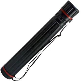 plastikowa tuba na rysunki z regulacją długości materiał: PP w kolorze czarnym regulacja długości poprzez system zatrzasków wkładanie rysunków przez odkręcaną zatyczkę pasek do noszenia na ramieniu średnica : 125 mm