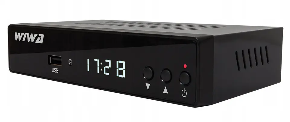 - Wymiary zewnętrzne dekodera DVB - T/T2 WIWA H.265 MAXX (szer/gł/wys): 168x105x37 mm