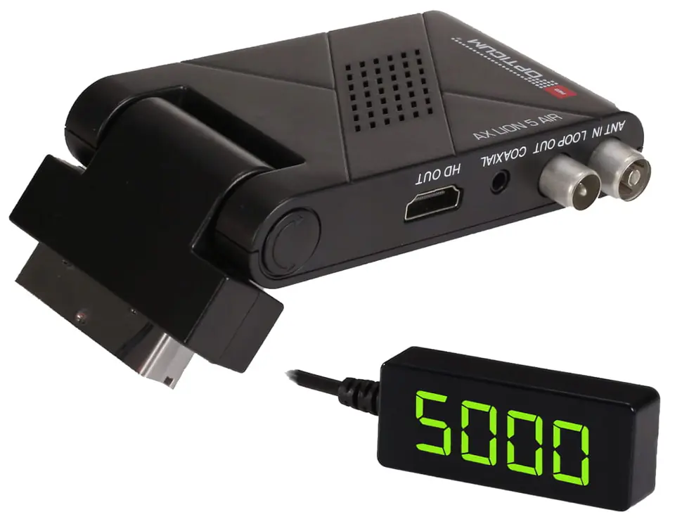 Odbiornik cyfrowej telewizji naziemnej. Umożliwia odbiór kanałów w wysokiej i niskiej rozdzielczości (HD i SD), zależnie od używanego podłączenie (HDMI lub scart). Tuner o niewielkich rozmiarach i z czujką pilota na kabelku, co umożliwia schowanie tunera za telewizorem, nawet w wąskiej przestrzeni za nim.