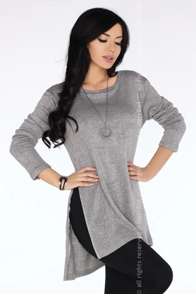 Ciekawa tunika wykonana z miękkej, elastycznej dzianiny. Z powodzeniem zastąpi Ci zarówno bluzkę, tunikę, jak i sweterek. Ma delikatny, szary kolor i prosty krój, który zdobią dwa rozsuwane zamki, umieszczone po obu stronach tuniki. Możesz rozpinać je jak chcesz i wciąż tworzyć nowe stylizacje. Skład: 85% poliester, 15% bawełna.