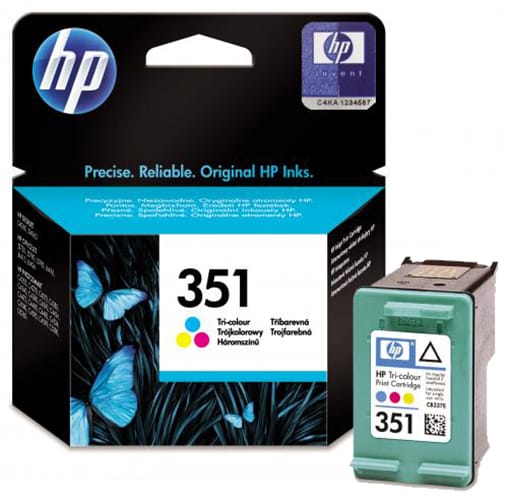 Trójkolorowy wkład drukujący HP 351 z atramentami Vivera. Oryginał. Pojemność atramentu: 4.5 ml. Wydajność (strony A4): 170 stron.