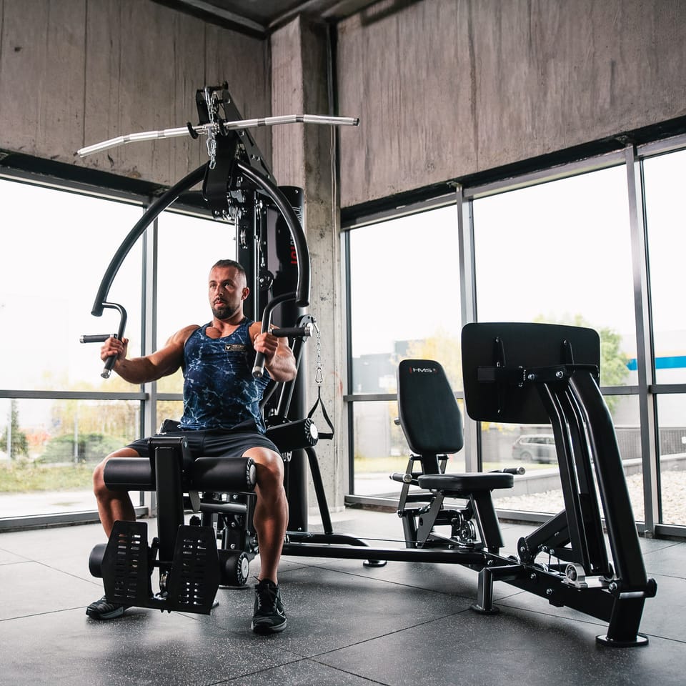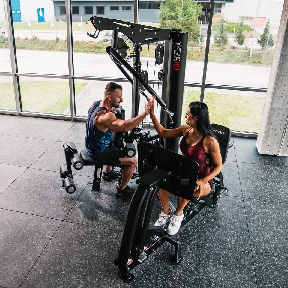 TYTAN 101 ATLAS DO ĆWICZEŃ Z PRASĄ DO NÓG COMMERCIAL HMS TYTAN 101 od HMS to w pełni komercyjny atlas do ćwiczeń z 90-kilogramowym stosem i przełożeniem cable ratio 1:1, który zapewnia płynny, realistyczny opór i kompletny trening całego ciała na niewielkiej przestrzeni. Rozbudowana regulacja siedziska, oparcia i ramion pozwala precyzyjnie dopasować sprzęt do sylwetki każdego użytkownika. Kluczowe cechy Stos 90 kg, przełożenie 1:1 – ciężar odczuwany odpowiada rzeczywistemu, idealne do progresji siły. Konstrukcja komercyjna – masywna rama, osłona stosu i stalowe linki. Wielofunkcyjność – wyciąg górny i dolny, prasa do nóg, ramiona do rozpiętek i wyciskania, stanowisko do wyprostów nóg. Szeroka regulacja – wysokość siedziska, kąt oparcia i położenie ramion; dopasowanie do wzrostu i zakresu ruchu. Zestaw uchwytów w komplecie – dwa uchwyty pojedyncze typu D-handle, uchwyt na kostkę, łańcuch z karabińczykiem, uchwyt prosty krótki, długi drążek skośny. Przykładowe zestawy ćwiczeń Plecy: ściąganie drążka z wyciągu górnego, wiosłowanie na siedząco z dolnego wyciągu z oparciem stóp na płycie. Klatka piersiowa: rozpiętki siedząc, wyciskanie na ramionach z różnymi możliwościami chwytu. Barki i ramiona: przyciąganie linki jednorącz, zgięcia na biceps i wyprosty na triceps. Nogi: wypychanie na prasie w pozycji siedzącej (różne ustawienia stóp), prostowanie nóg. Pośladki i odwodzenie/przywodzenie: ćwiczenia na linkach z opaską na kostkę – odwodzenia, tył uda/pośladek (kick-back). Core: ściąganie linki do brzucha w siadzie/klęku, brzuszki. To kompletny atlas wielofunkcyjny dla siłowni, klubów fitness, hoteli, szkół i stref treningu personalnego. Ergonomia i dopasowanie Regulowane siedzisko i oparcie oraz wielostopniowe ustawienia ramion gwarantują prawidłową pozycję i komfort. Intuicyjne pokrętła i skale kątów przyspieszają zmianę ustawień między użytkownikami – nie tracisz czasu między seriami. Płynność ruchu i bezpieczeństwo System stalowych linek prowadzonych po łożyskowanych rolkach minimalizuje tarcie i zapewnia równy opór w całym zakresie ruchu. Zabudowana kolumna ze stosami obciążeniowymi 90 kg poprawia bezpieczeństwo i estetykę strefy treningowej, a antypoślizgowe platformy pod stopy stabilizują pozycję podczas wiosłowania i pracy nóg. Dla kogo? TYTAN 101 to wybór dla właścicieli klubów i trenerów, którzy szukają profesjonalnego, komercyjnego atlasu do siłowni, a także dla wymagających użytkowników domowych, którym zależy na maksymalnej funkcjonalności, niezawodności i nowoczesnym designie HMS. Specyfikacja: Wymiary Długość: 203 cm Szerokość: 238 cm Wysokość: 211 cm Stos: 90 kg (regulowany co 4,5 kg) Profil główny: 10 x 5 x 0,2 cm Stanowisko po stronie wyciągów Ławka Oparcie: 37 x 53 cm Siedzisko: 37 x 44 cm Regulacja wysokości: 5-stopniowa (53-64 cm) Ramiona Regulacja pozycji: tak (10-stopniowa) Ramiona do rozpiętek Regulacja pozycji: tak (12-stopniowa) Uchwyt poziomy Długość: 12 cm Średnica: 3,3 cm Uchwyt pionowy Długość: 12,5 cm Średnica: 3,3 cm Prasa do wyciskania Ławka Oparcie: 33 x 53 cm Regulacja pozycji: tak (7-stopniowa) Siedzisko: 37 x 44 cm Uchwyt Długość: 12 cm Średnica: 3,3 cm Odległość oparcia od płyty do wyciskania: 83-93 cm Płyta: 40 x 61 cm Współczynnik przenoszenia siły 1:1 (z wyjątkiem ramion do rozpiętek - tam 1:2) Maksymalna waga użytkownika: 136 kg Waga: 297,5 KG Uwagi: Gwarancja 24 miesiące w przypadku użytku domowego Gwarancja 12 miesięcy w przypadku użytku komercyjnego Importer: Abisal Sp. z o.o.| Polska | 41-807 Zabrze | ul. Pyskowicka 17 | e-mail: abisal@abisal.plAbisal Sp. z o.o. deklaruje, iż produkty sprzedawane przez firmę są bezpieczne i spełniają wymagania zawarte w Ustawie o ogólnym bezpieczeństwie produktów z dnia 12 grudnia 2003r. (Dz.U. z dnia 31 grudnia 2003r.)