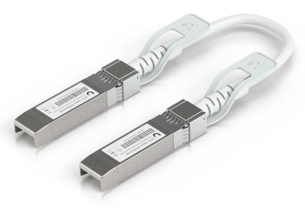 Ubiquiti Direct attach cable with auto link optimization for seamless 1G SFP, 10G SFP+, and 25G SFP28 interconnects between UniFi devices.