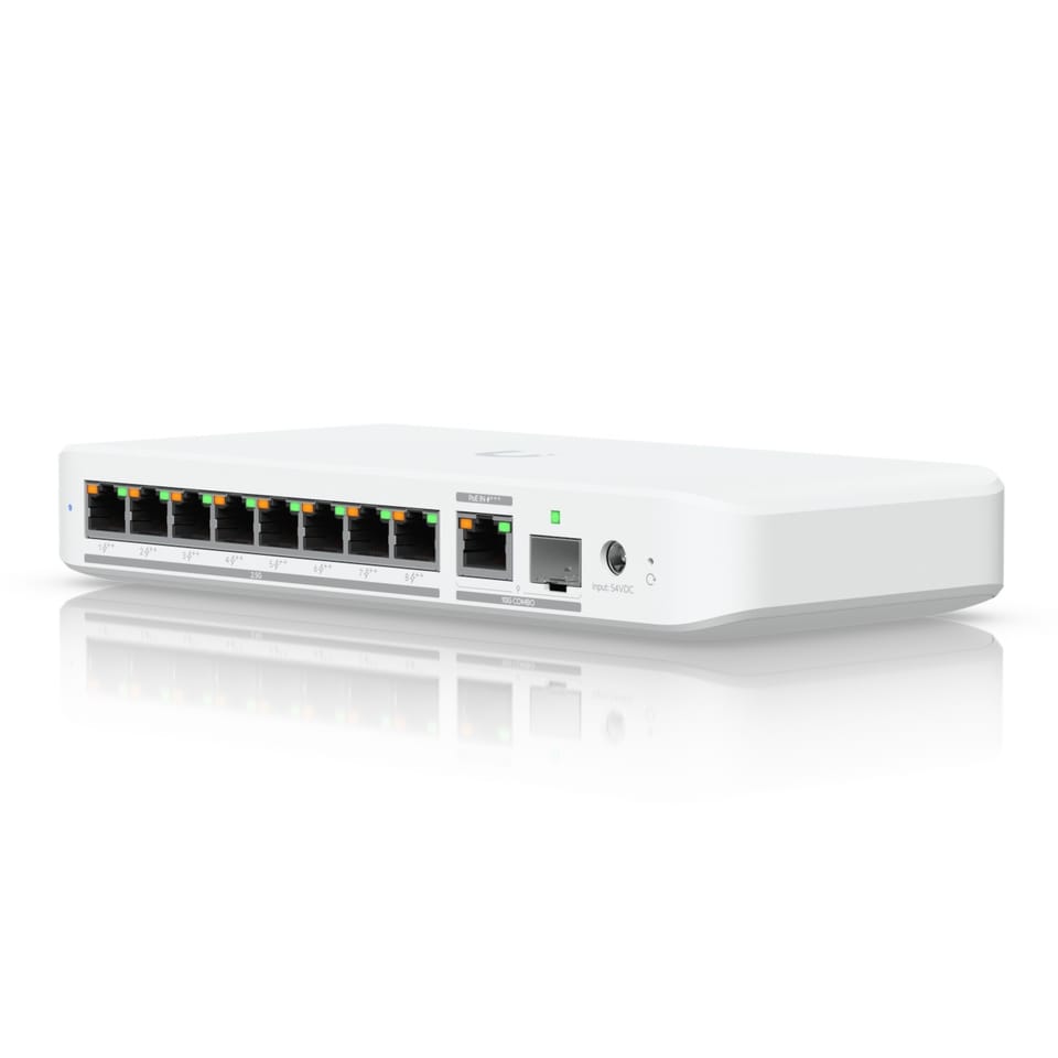 Ubiquiti Flexible, 8-port 2.5 GbE PoE++ switch with a 10 GbE RJ45/SFP+ combination uplink port that can be powered with PoE+++ or an AC