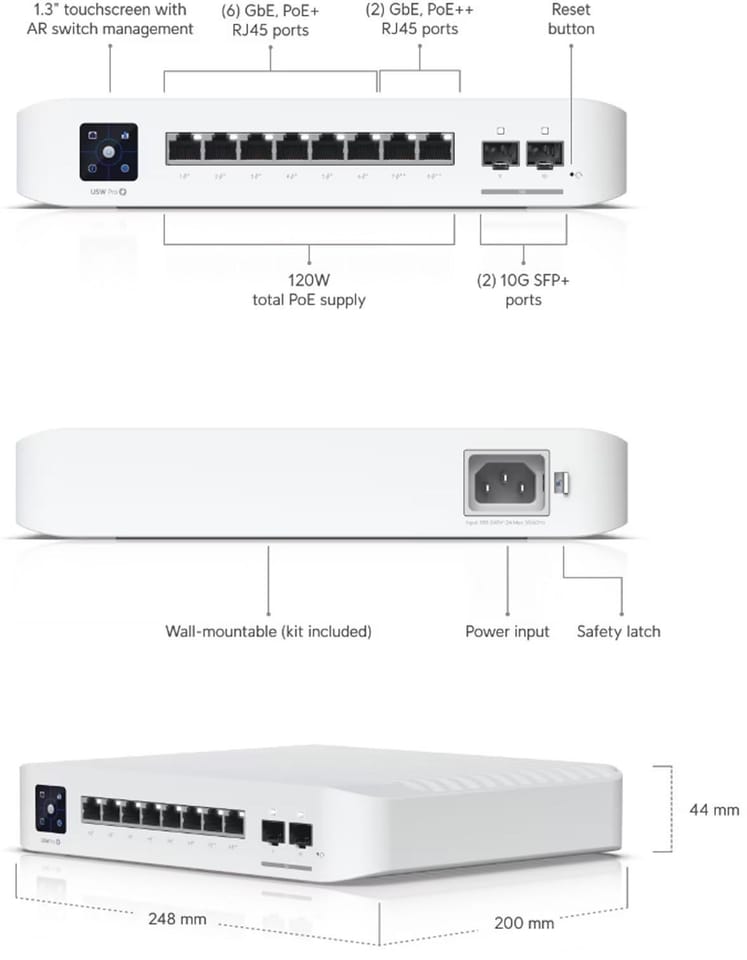 UBIQUITI USW-PRO-8-POE 120W) UNIFI 8 PORT GBE POE++ SWITCH WITH SFP+ UPLIN