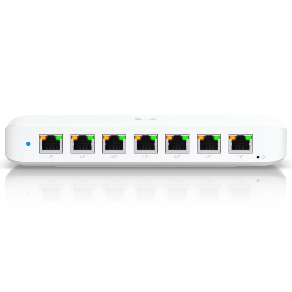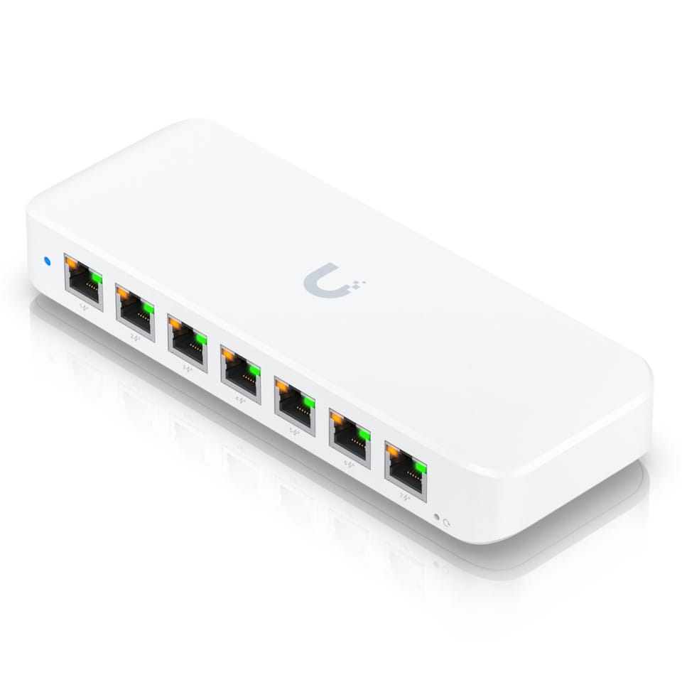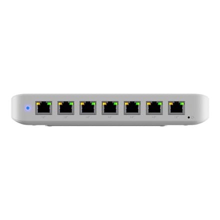 Ubiquiti A compact, 8-port, Layer 2 GbE PoE switch with versatile mounting options.