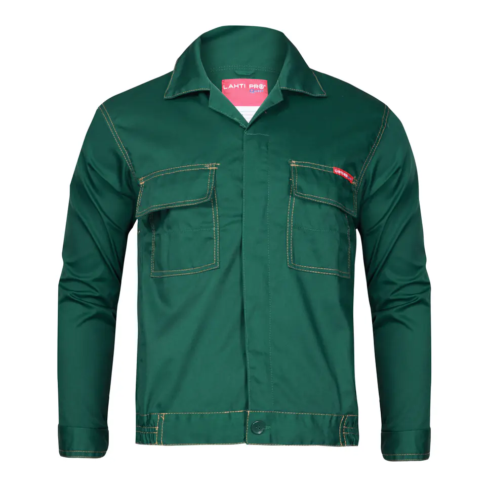 - Bluza: 2 kieszenie zapinane na rzep. Otwory wentylacyjne zwiększające cyrkulację powietrza. Regulacja szerokości u dołu bluzy za pomocą gumki. Mankiety zapinane na guzik