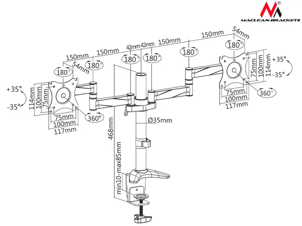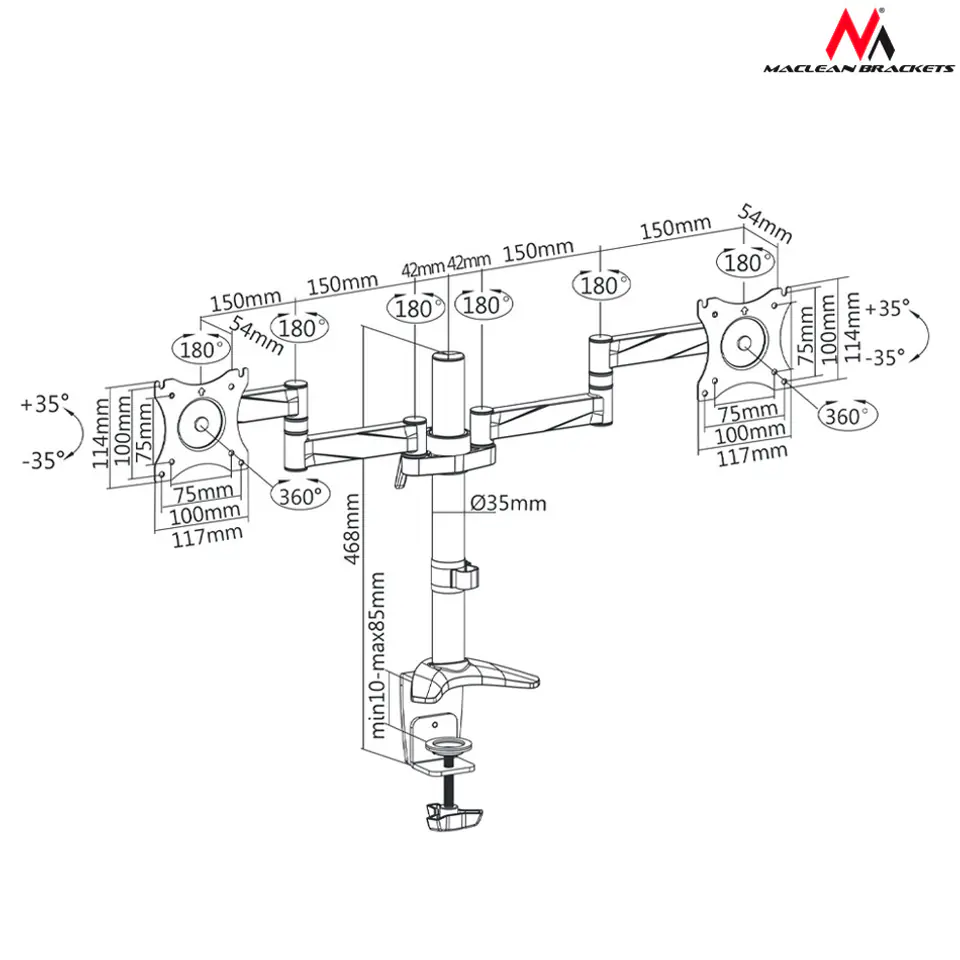 MC-714 44490 Uchwyt biurkowy do dwóch monitorów LCD 13-27 cali 8kg aluminiowy