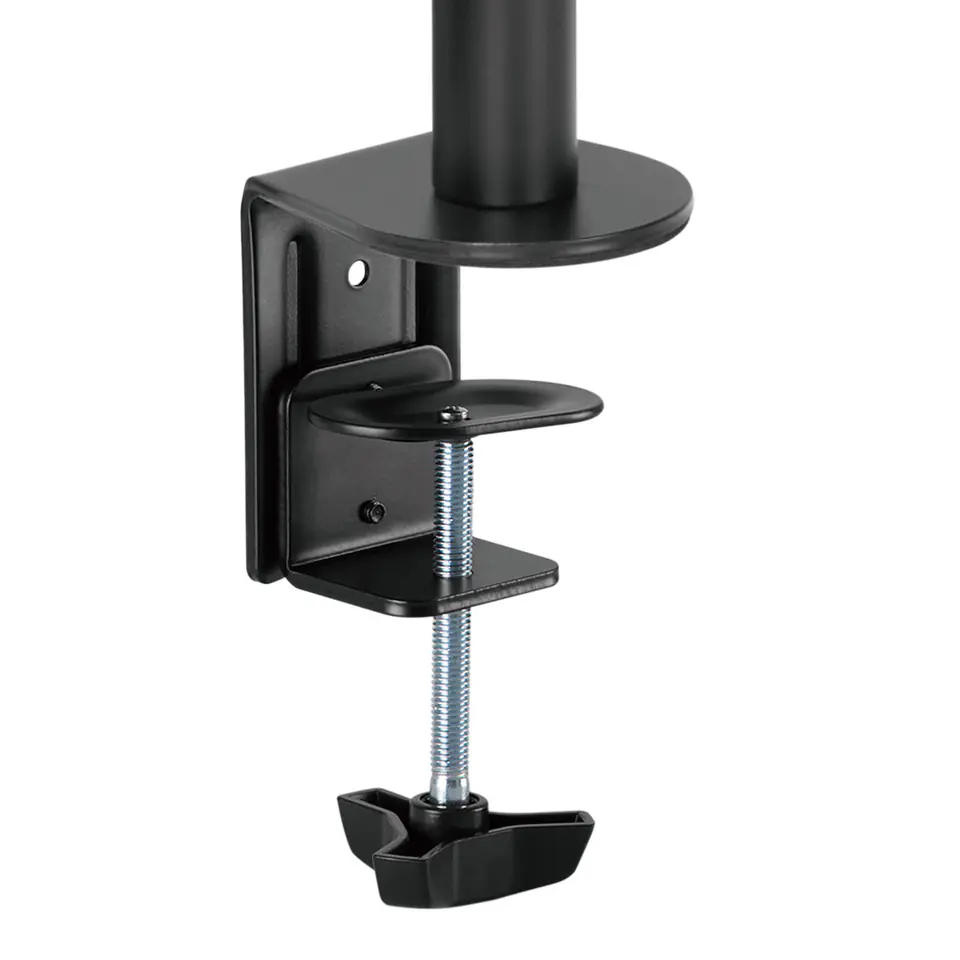 Uniwersalny uchwyt do monitorów LCD, LED z możliwością montażu do blatu biurka lub stołu.Uchwyt przeznaczony do monitorów 17" do 32" o maksymalnej wadze 8 kg. Uchwyt został wykonany z najwyższej jakości metalu (połączenie stali, aluminium formowanego ciśnieniowo oraz tworzywa) w kolorze czarnym. Elementy uchwytu monitora zostały idealnie dopasowane zapewniając stabilną i bezpieczną podporę do monitora.Ramię do monitora LCD Maclean MC-883 zapewnia duży komfort w pracy optymalizuje ergonomię oraz widok z monitora poprzez regulację kąta nachylenia, wysokości itp. Ramię wykonane z wysokiej jakości stali - zostało wyposażone w wytrzymałą klamrę montażową, która umożliwia mocowanie do blatu lub innych powierzchni płaskich. Idealne do zastosowania m.in. w biurze i domu - bez wiercenia dziur w biurkach lub ścianach.