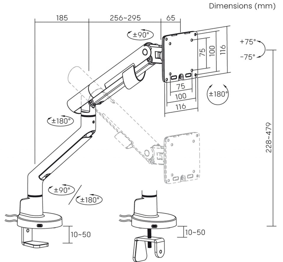 | Regulacja w pionie (nachył): | -75 do 75 stopni |