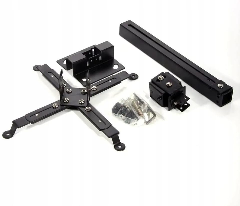 - W komplecie akcesoria montażowe: wszystkie narzędzia do montażu, wiele rodzajów śrub pasujących do wszystkich projektorów, kołki rozporowe. Jedyne co musisz zrobić we własnym zakresie to wywiercić otwory w ścianie lub suficie pod uchwyt.
