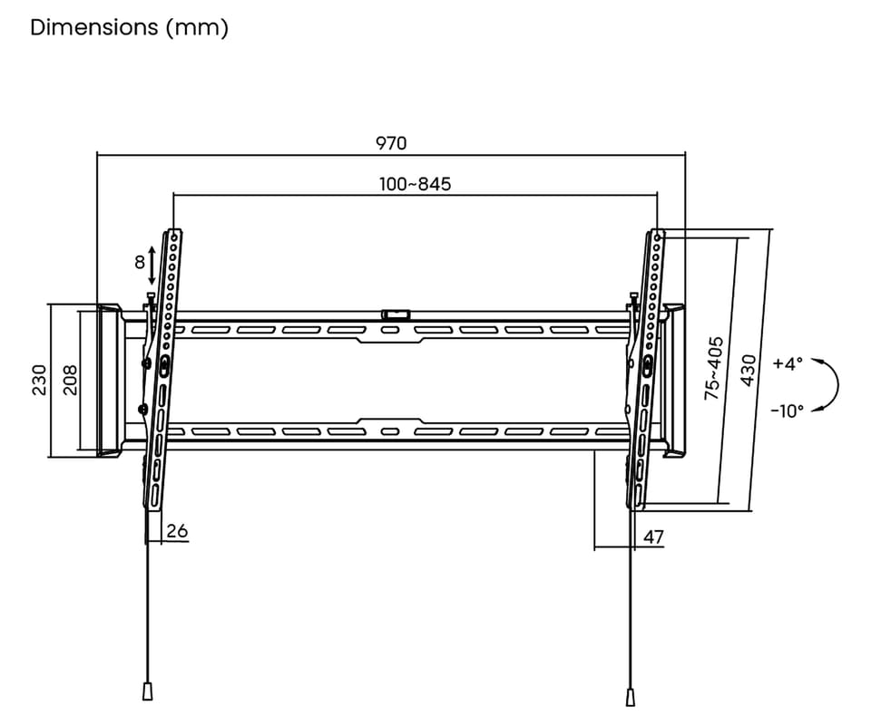 Uchwyt umożliwia łatwą (bez użycia narzędzi) regulację pochylenia panelu w pionie