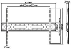VESA: 100x100, 100x150, 100x200, 150x200, 150x150, 200x100, 200x200, 300x200, 300x300, 400x200, 400x300, 400x400, 600x400 mm