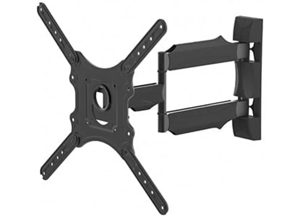 Uchwyt ścienny do telewizora LCD/LED. Uchwyt zawiera system zarządzania kablami (ułatwia poprowadzenie przewodów oraz poprawia estetykę) oraz dekoracyjne maskownice zakrywające płytę montażową. Umożliwia wypoziomowanie uchwytu w zakresie +/- 5 stopni - przydatne w przypadku niedokładnego wywiercenia otworów w ścianie. Szeroki i płynny zakres regulacji dzięki długiemu na 50cm ramieniu. Dołączony zestaw śrub do montażu.