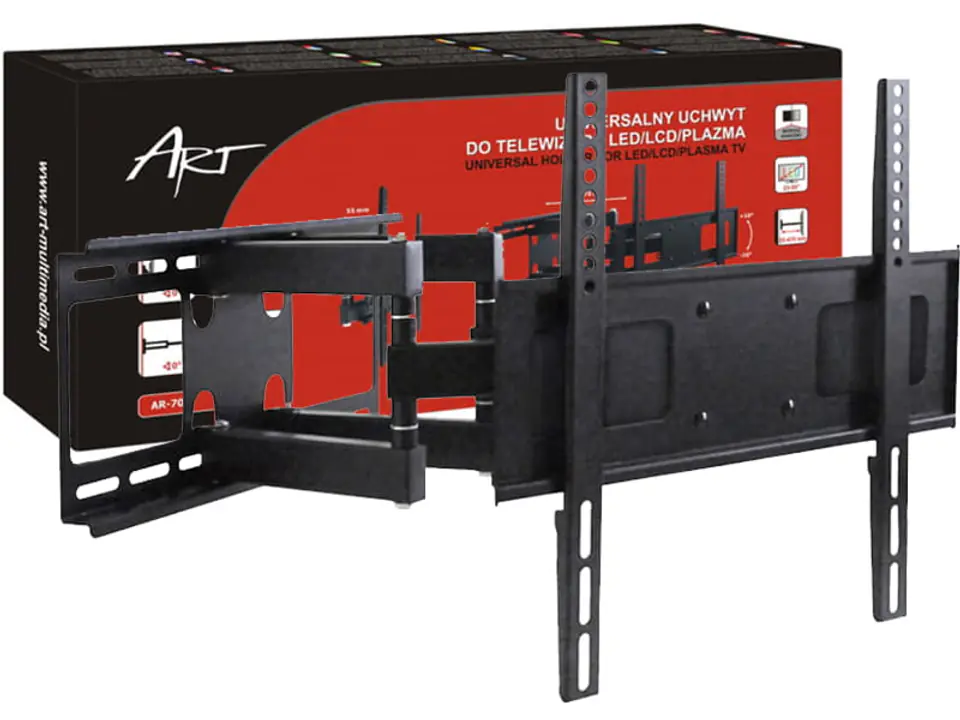 Uchwyt ścienny do telewizora LCD/LED/PLAZMA, regulowany. Typ SLIM, bardzo bliska odległość od ściany przy dużym poziomie regulacji. Podwójne ramię daje stabilność i bezpieczeństwo.