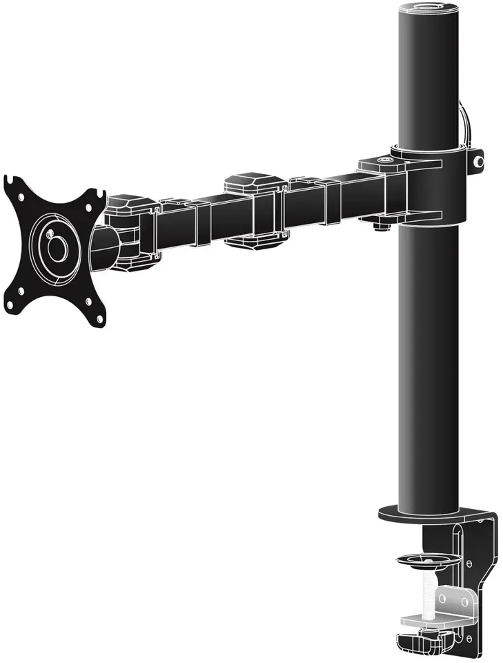 POJEDYNCZE RAMIĘ MONTAŻOWE DS1001C-B1Proste i funkcjonalne ramię na jeden ekran. IIYAMA DS1001C-B1 to ramię montażowe mocowane do blatu (mocowanie boczne lub od spodu) na jeden ekran o przekątnej do 30”. Ramię pozwala zaoszczędzić miejsce na biurku, a system prowadzenia kabli ułatwia utrzymanie porządku. Szeroki zakres możliwości regulacji, obejmujący pochył w pionie i poziomie, dostosowanie wysokości i rotację, pozwala na komfortowe dopasowanie położenia ekranu do swoich preferencji i zachowanie ergonomicznej, zdrowej dla kręgosłupa postawy ciała.