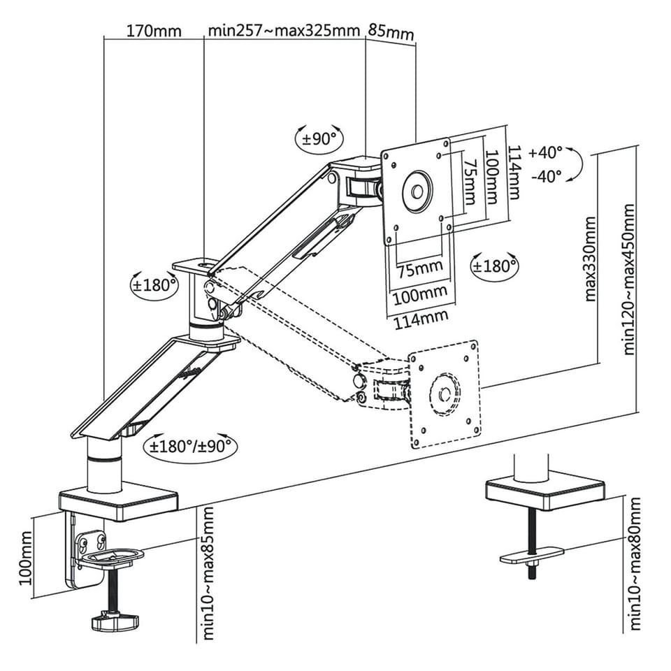 - Przeznaczony dla monitorów od 17 do 32" (lub większych, jeśli ich waga nie przekracza 8 kg, a standard VESA jest zgodny z uchwytem)