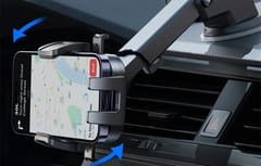 Aby umieścić telefon w uchwycie, wystarczy go docisnąć – zaciski zablokują go automatycznie. Zwolnienie jest równie proste – wystarczy lekko nacisnąć tylne paski. Jedna ręka wystarczy, aby korzystać z uchwytu bez rozpraszania uwagi od drogi.