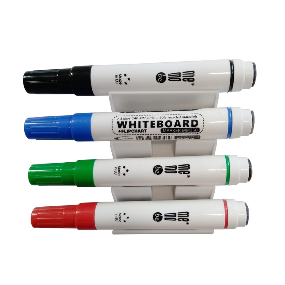 Uchwyt magnetyczny do markerów MEMOBE.- Wydzielone 4 przegródki na 4 markery. Magnetyczne paski z tyłu umożliwiają bezinwazyjny montaż na tablicy. Markery są zawsze pod ręką. Zapewnia właściwe przechowywanie markerów w pozycji poziomej. Praktyczny i poręczny. Zajmuje niewiele miejsca.