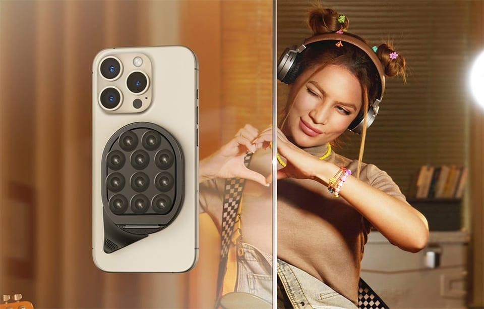 - - Swobodna regulacja kąta: Dzięki niezależnemu przegubowi można ustawić smartfona w dowolnej pozycji – poziomo lub pionowo – dla maksymalnego komfortu,