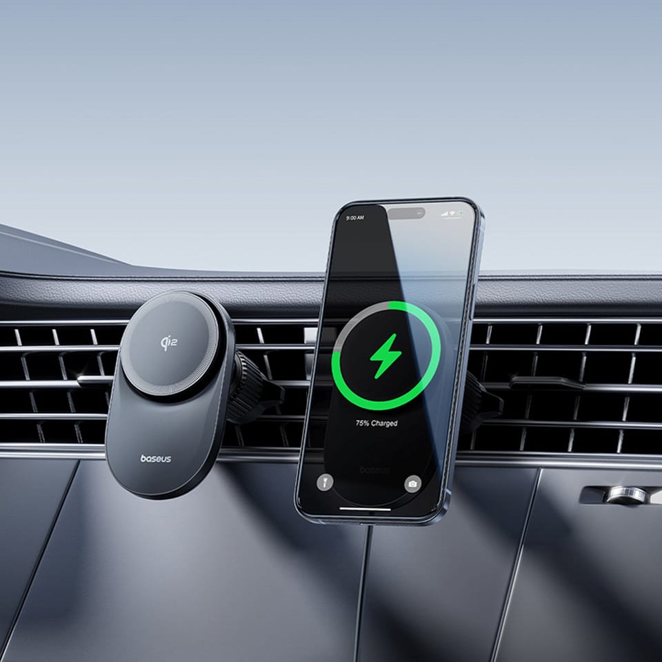 Kod produktu: 1032668Baseus PrimeTrip VC1 Pro to magnetyczny uchwyt samochodowy z wbudowaną ładowarką indukcyjną Qi2, przeznaczony do montażu na kratce nawiewu. Zapewnia stabilne mocowanie telefonu oraz bezprzewodowe ładowanie podczas jazdy. Wysoka siła magnetyczna umożliwia pewne trzymanie smartfona, a kompaktowa forma nie ogranicza widoczności ani dostępu do nawiewu. To rozwiązanie zaprojektowane do codziennego, intensywnego użytkowania w samochodzie.Cechy produktu: