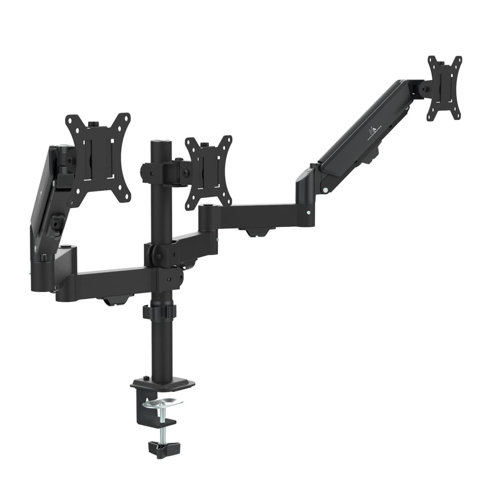 Cechy- Uchwyt do trzech monitorów o przekątnej od 17 do 27 cali zapewniający szeroką kompatybilność z większością modeli- Dwa ramiona wyposażone w sprężyny gazowe umożliwiające płynną regulację wysokości i położenia monitorów- Trzeci monitor montowany bezpośrednio do słupka z możliwością regulacji wysokości podczas instalacji- Regulacja nachylenia każdego monitora w zakresie od -45 do +45 stopni- Obrót ekranów na boki w zakresie 90 stopni w każdą stronę- Obrót ramion w przegubach o 180 stopni oraz przy słupku o 180 stopni zapewniający maksymalną swobodę ustawienia- Zdejmowane płyty VESA ułatwiające szybki montaż i demontaż monitorów- System przelotek na przewody pozwalający na estetyczne poprowadzenie kabli- Dwa sposoby montażu umożliwiające instalację uchwytu do blatu lub w otworze na przewody- Solidna stalowa konstrukcja zapewniająca bezpieczeństwo i długą żywotność- W zestawie komplet śrub i elementów montażowych- Maksymalne obciążenie: 8 kg