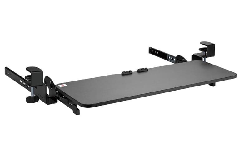 Doskonałe uzupełnienie biurka komputerowego. Uchwyt mocuje się do blatu biurka oraz prowadnicach – dzięki takiemu rozwiązaniu uzyskujemy ergonomiczne stanowisko pracy.