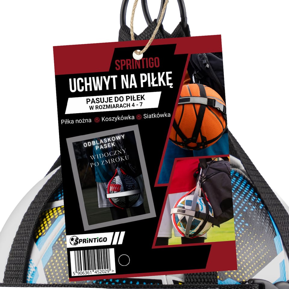 Lepszy niż torba na piłkę Praktyczny i stylowy gadżet, który pozwala wygodnie przenosić piłkę w drodze na trening, mecz, czy do szkoły. Pokaż swoją piłkę, niech podkreśla Twój styl i pokazuje, że sport to dla Ciebie coś więcej niż zwykłe hobby. Dzięki uchwytowi transport piłki staje się łatwy i można ją mieć zawsze przy sobie – bo prawdziwa pasja nie kończy się wraz z ostatnim gwizdkiem. Regulowany rozmiar, wygodne używanie Specjalna klamra pozwala łatwo zmieniać rozmiar siatki i szybko włożyć lub wyjąć piłkę. To rozwiązanie, które oszczędza czas, jest wygodne i sprawdzi się niezależnie od wielkości piłki oraz wieku i wprawy użytkownika. Pasuje do różnych rozmiarów piłek Regulowany rozmiar pozwala na dopasowanie uchwytu do każdej piłki w rozmiarze 4 – 7. Jest idealny do piłki nożnej, siatkówki czy koszykówki. Ten sam uchwyt wykorzystasz do różnych typów piłek – w klubie, na boisku lub podczas rekreacyjnych treningów. Uniwersalne mocowanie Wytrzymały karabińczyk umożliwia przypięcie piłki do każdego plecaka, torby, paska lub szlufki. Dzięki temu uchwyt doskonale sprawdza się zarówno w drodze na trening, jak i w codziennym użytkowaniu - w mieście, w szkole, na uczelni czy w pracy. Łatwo przymocuj piłkę do dowolnej torby – i miej wolne ręce! Odblask dla bezpieczeństwa Odblaskowy pasek zwiększa widoczność i bezpieczeństwo po zmroku. To funkcjonalny detal, który daje pewność, że jesteś widoczny dla innych – niezależnie od tego, czy wracasz z wieczornego treningu, czy idziesz na boisko o świcie. Wolne ręce - wygodnie i bezpiecznie Pozwala przenosić piłkę bez użycia rąk - idealne rozwiązanie podczas jazdy na rowerze, hulajnodze lub spaceru z torbą sportową. Wygoda, swoboda i pełna mobilność - w każdych warunkach. Praktyczny prezent dla sportowca Uchwyt do piłki Sprintigo to świetny prezent dla każdego miłośnika sportu – niezależnie od wieku. Sprawdzi się jako praktyczny upominek dla młodego piłkarza, trenera, sportowego rodzica, a także aktywnych dorosłych, którzy lubią mieć swoją piłkę zawsze przy sobie. To trafiony wybór na urodziny, święta, dzień dziecka czy niespodziankę dla drużyny sportowej – drobiazg, który podkreśla prawdziwą pasję do gry.