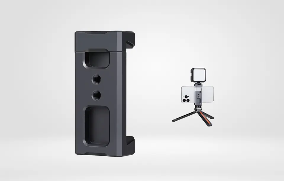 Zwiększ wygodę podczas nagrywania filmów i robienia zdjęć. Uchwyt na smartfon został wykonany z wytrzymałego stopu aluminium oraz miękkiej gumy ochronnej, która zapewnia niezbędną stabilność. Wyposażono go w mocowanie typu Cold Shoes oraz uniwersalny gwint 1/4 “, dzięki czemu możesz korzystać z niego, jak tylko chcesz. Ponadto zacisk uchwytu regulowany jest w zakresie 6.5-9 cm, dzięki czemu jest szeroko kompatybilny.