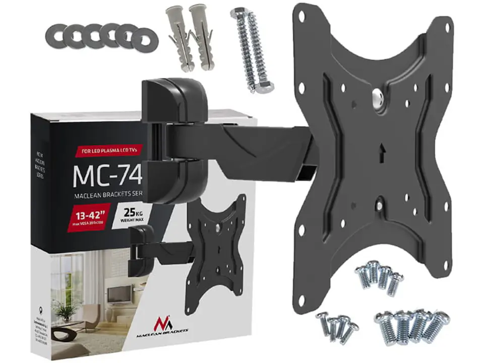 Uchwyt do telewizora lub monitora 13-42" Maclean 25kg czarny. Zgodność VESA.
