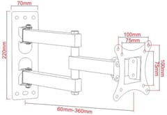 Uchwyt Art AR-57A to profesjonalny uchwyt na Twój telewizor. Dzięki temu, że posiada długie i podwójne ramię to zapewnia bardzo szeroki zakres regulacji. Regulować możemy i w pionie i w poziomie. Płyta ścienna jest niezwykle szeroka, więc doskonale rozkłada ciężar telewizora, co czyni ją bardzo bezpiecznym uchwytem. Maksymalnie udźwignie telewizor ważący do 25 kilogramów. Uchwyt wykonano z metalu malowanego proszkowo w kolorze czarnym. W zestawie otrzymamy komplet śrub montażowych.