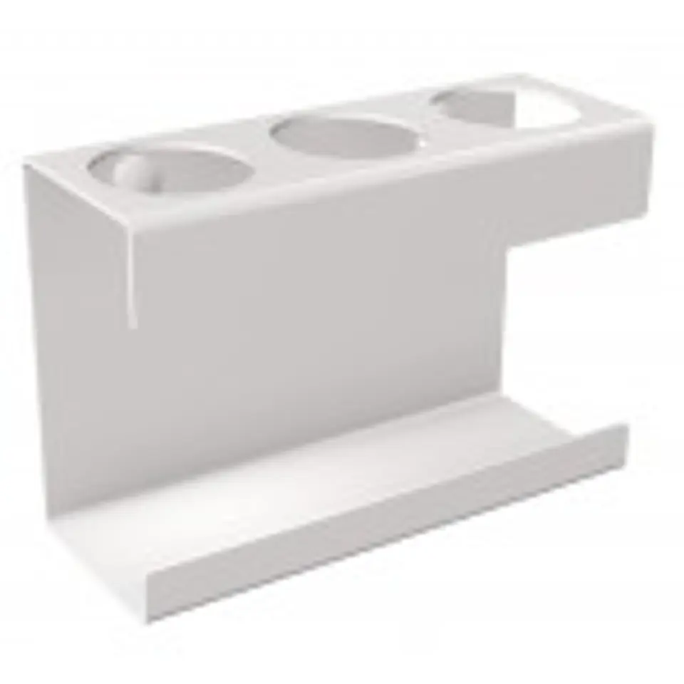 Nazwa produktu: Uchwyt na trzy szczoteczki elektryczne białyKod: 336BProducent: ANDEXOpis:- Wymiary: 130 mm x 88 mm x 50 mm- Uchwyt można powiesić na ścianie wykorzystując wkręty i kołki lub postawić na blacie przyklejając samoprzylepne silikonowe podkładki antypoślizgowe- Produkt wykonany jest z wysokiej jakości stali nierdzewnej- Całość pokryta jest farbą termoutwardzalną kolor biały RAL 9016 połysk