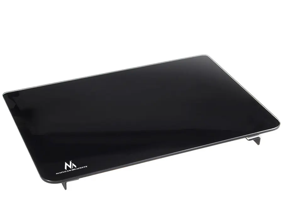 Specyfikacja- Kolor: czarny- Wymiary półki: 360x250 mm- Uchwyt wykonany z metalu i grubego hartowanego szkła 5 mm