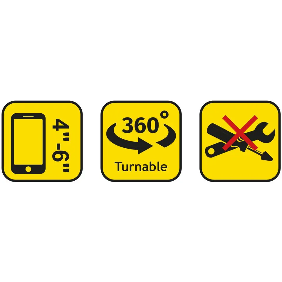 UCHWYT NA TELEFON SILIKONOWY DUNLOP OBRACANY 360 pomoże ci mieć Twój telefon zawsze w zasięgu wzroku i ręki. W Wodoodpornej i elastycznej obudowie umieścisz telefon o wielkości ok. od 4 do 6 cali (10 – 15 cm). Jego obrotowa głowica pozwoli Ci, na obracanie ekranu pod dowolnym kątem, a regulowana średnica uchwytu do montażu, zamontować go gdzie tylko potrzebujesz, na kierownicy roweru, hulajnogi czy na rączce wózka.Parametry:- Obrotowa głowica: tak, o 360 stopniPasuje do telefonu o wymiarach 4-6 cali (ok. 10- 15 cm)Montaż bez użycia narzędzi: takWymiary: 13 x 6 x 4,5 cm (dł. x szer. x gł. z uchwytem do montażu)Waga netto: 0,038 kg Waga brutto: 0,058 kg Kolor: czarnyMateriał: tworzywo sztuczne (silikon)Wymiary opakowania: 17 x 8 x 5 cm (wys. x szer. x gł.)Regulowana średnica uchwytu do montażu: max 3 cm