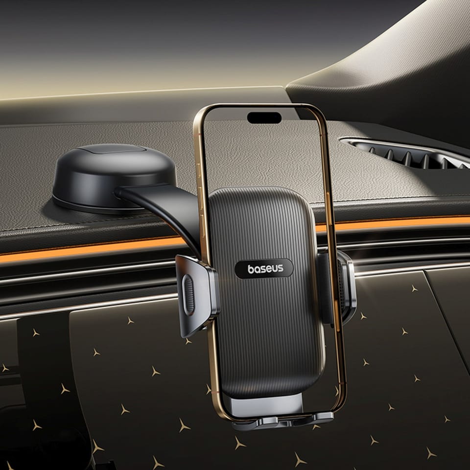 - - Uchwyt samochodowy do smartfona z przyssawką na deskę rozdzielczą - czarny