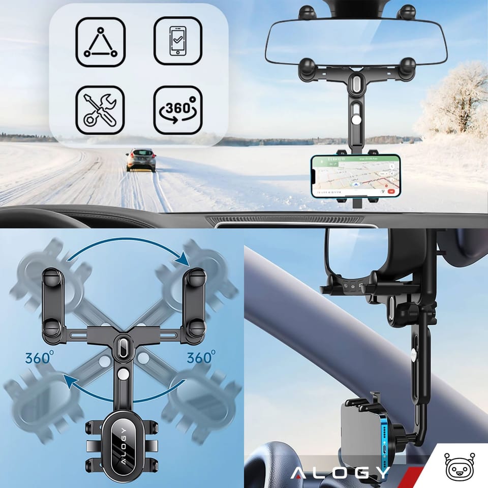 Uchwyt samochodowy do telefonu na lusterko wsteczne auta samochodu Alogy Mirror Car Holder Czarny