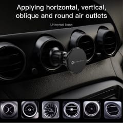 Uchwyt montowany jest bezpośrednio do kratki wentylacyjnej za pomocą solidnego zaczepu. Nie wymaga dodatkowych narzędzi – wystarczy kilka sekund, aby był gotowy do użycia. W zestawie znajdziesz także dwie metalowe blaszki, które umożliwiają magnetyczne mocowanie telefonu – niezależnie od modelu.