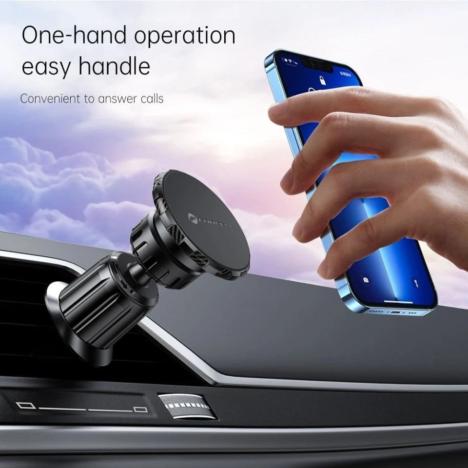 Wyposażony w mocne magnesy, uchwyt stabilnie utrzymuje telefon nawet na wyboistych drogach. W zestawie znajdują się dwie metalowe blaszki, które umożliwiają montaż także urządzeń bez wbudowanej funkcji MagSafe.