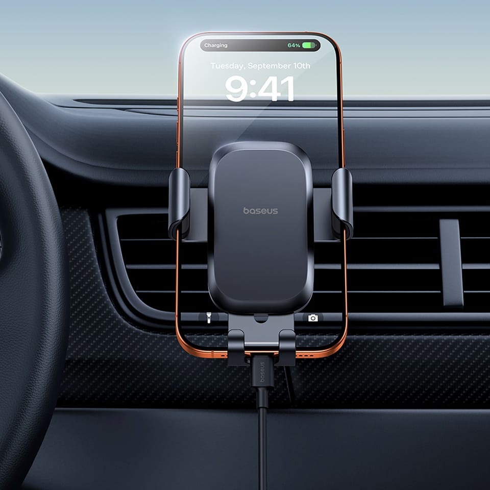 Kod produktu: 1032689Uchwyt samochodowy Baseus Metal Age Go został zaprojektowany z myślą o stabilnym i wygodnym korzystaniu ze smartfona podczas jazdy. Mechanizm grawitacyjny automatycznie dopasowuje ramiona do szerokości telefonu, ułatwiając obsługę jedną ręką. Montaż na kratce nawiewu pozwala zachować dobrą widoczność ekranu bez zajmowania miejsca na szybie lub desce rozdzielczej. Metalowa konstrukcja zapewnia trwałość i pewne trzymanie urządzenia. To praktyczne rozwiązanie do codziennej jazdy miejskiej i dłuższych tras.Cechy produktu: